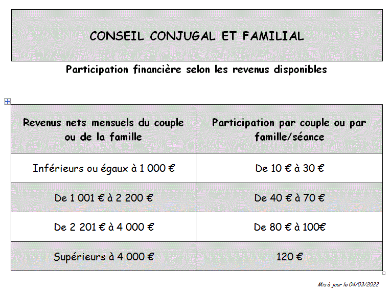 En termes contemporains, le Conseil Conjugal et Familial devrait s’appeler « la clinique de la relation » dans le couple et la famille. C’est une proposition d’accompagnement des couples et des familles dans le domaine de la communication. L’expérience montre qu’en présence d’un tiers neutre, dans un cadre de confidentialité et de bienveillance, la communication dans un couple peut s’élargir et faire disparaitre dans beaucoup de domaines des blocages, des non-dits, des conflits récurrents. La proposition toute simple d’essayer de communiquer « mieux » dans un cadre sécure produit souvent des effets étonnants. Quand on arrive à se parler en profondeur, la vie peut retrouver un dynamisme formidable.